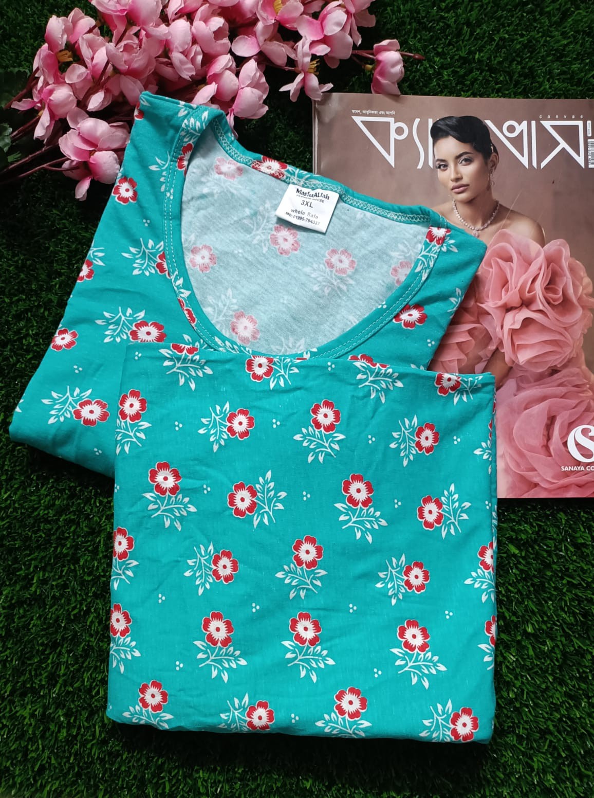 '' ফ্রি সাইজের লেডিস টি-শার্ট সেট -- খুবই সফট গেঞ্জি স্টিস কাপড়ের ''১। টি-শার্ট -- লম্বায় ৩৮" ও বডি - ৪৪/৪৬ টানলে ; ৫০/৫২" হবে ।